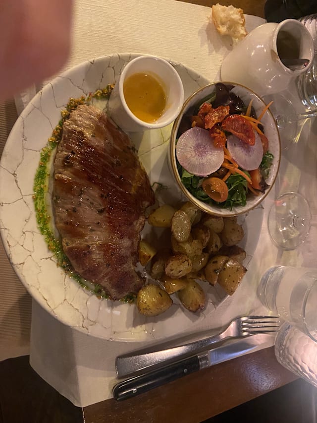10/10We've had the steak with french fries, salad e.pepper.sauce, it was a good portion and the taste of meat excellent. Also the wine was good. And the artisanal sorbet, lime flavour, perfect after the meal. The service was relally nice