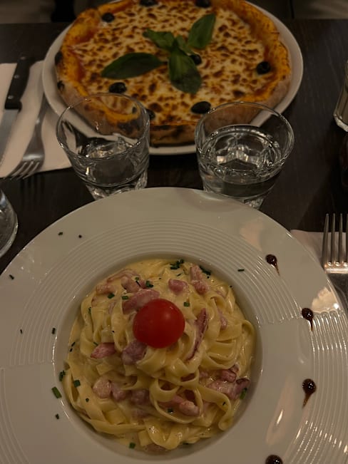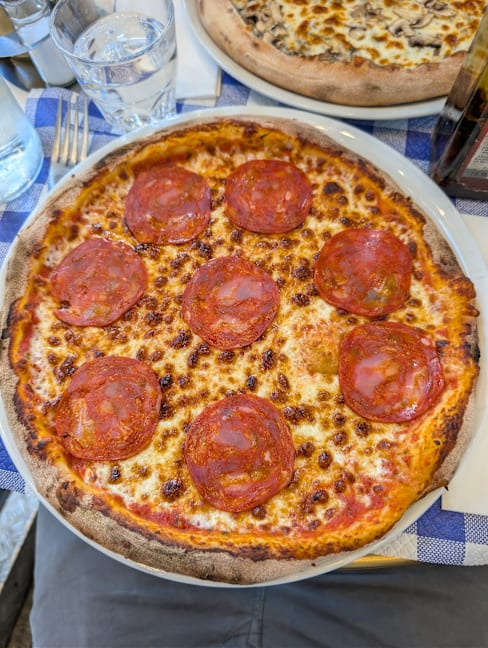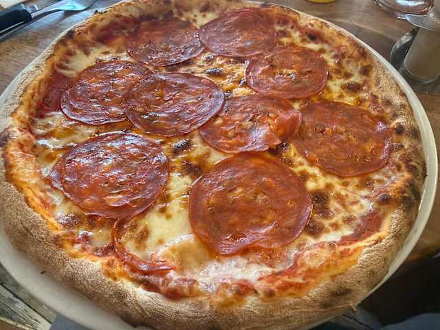 4/10The menu wasnt the one on the fork or on their own website. The base prices are absolutely ridiculous, pizza was 24€ originally but even with 50% off, I feel i got scammed, industrial fake cheese, pepperoni raw on top, really bad, yuck... Place looks nice otherwise I guess
