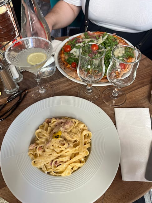 4/10The menu wasnt the one on the fork or on their own website. The base prices are absolutely ridiculous, pizza was 24€ originally but even with 50% off, I feel i got scammed, industrial fake cheese, pepperoni raw on top, really bad, yuck... Place looks nice otherwise I guess