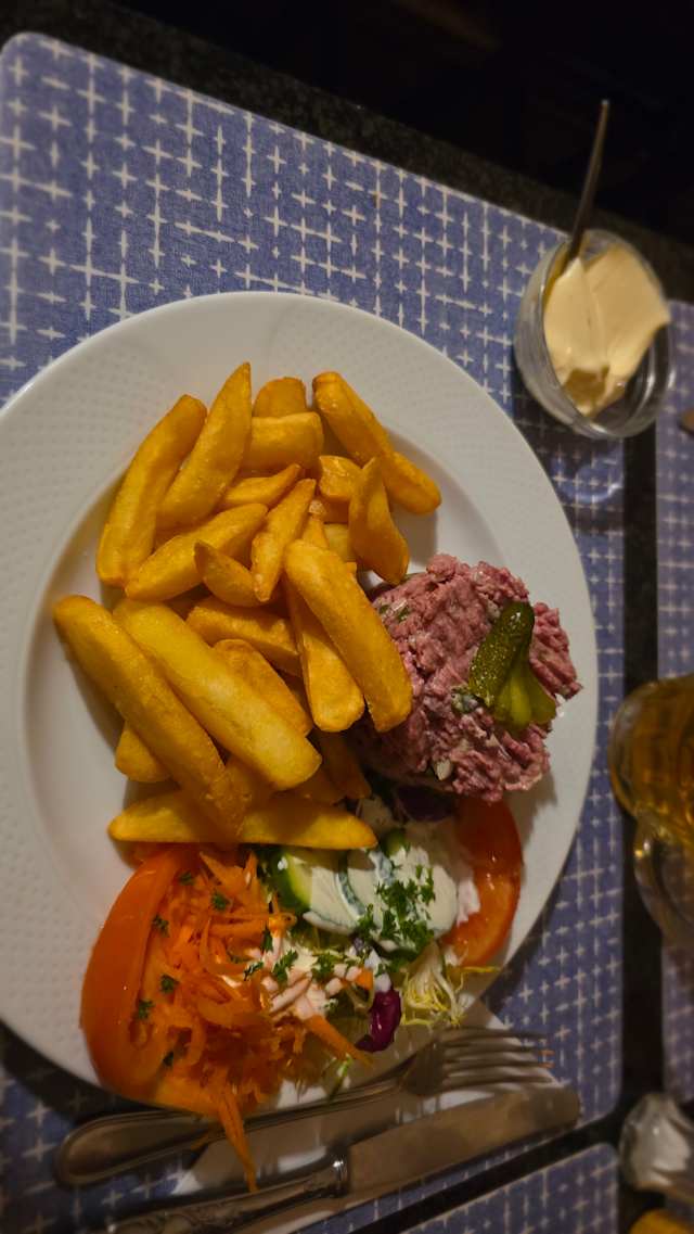 - Américain, frites, salade (préparé minute)