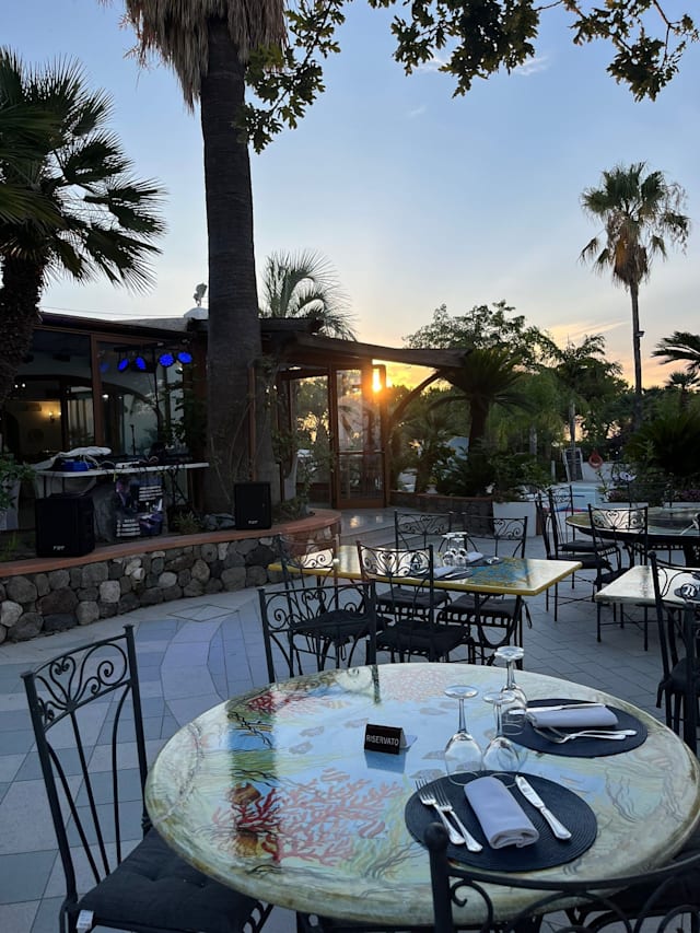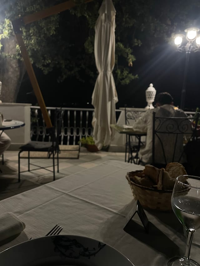 7.5/10Arrived at 8pm. We were the only customers. Weird. View is amazing… overlooking Italy coast and the ischia port. No other customers arrived until 9:15 which was a shame for the atmosphere, place fell abandoned. Food was good, had the risottos which were tasty. Octopus was nice but quite small. They didn’t have many bottles available from the wine list. Never asked us if we wanted dessert but at that point Italians had arrived so I guess attention was on them which is something we have noticed in different places on the island… overall… beautiful setting and spectacular coz the setting for view but the rest is okay… shame coz the setting has so much potential.