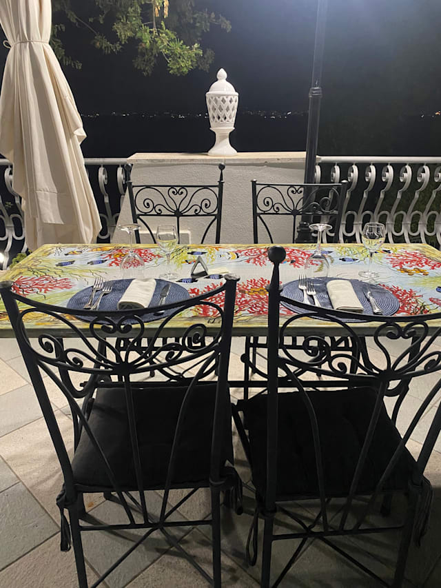 10/10The view from the terrace is extraordinary, colors of the sky and water shifting as we enjoyed our dinner. The menu offers excellent options.