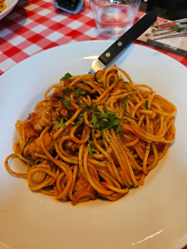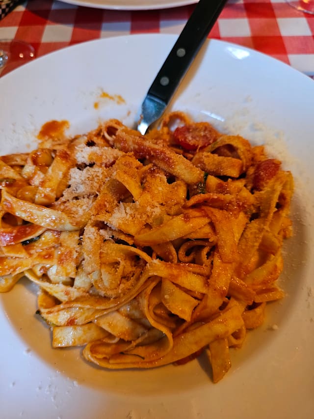 10/10This is a 30-seat neighborhood restaurant with amazing food. Tables are close together, the menu is simple traditional Italian offerings, and there are only a handful of wines on the menu. The pasta was incredible. Every bite just relaxed us even more. Has a family-run vibe, even though our server told us she was “not family, just a neighbor.”
