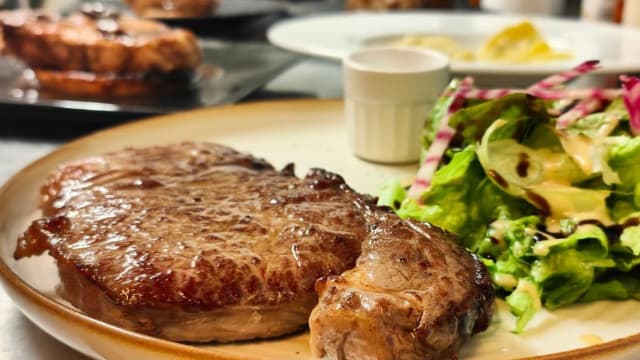 Faux Filet Charolais, pommes frites maison bouquet de salade sauce Meurette