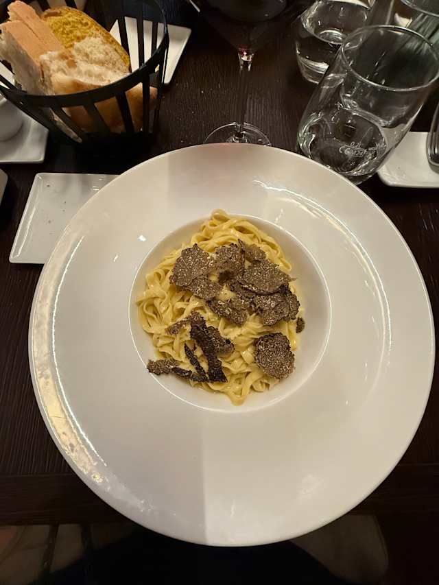 - Carpaccio di vitello, pinoli, tartufo e grana