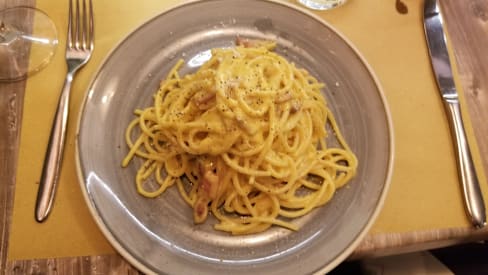 10/10In past visits to Rome, we have enjoyed this restaurant. We were so happy to see it on The Fork. We were warmly greeted when we arrived. We were so impressed to see the new décor. Jose, our server, as well as the rest of the staff, were so friendly and attentive. We were seated inside, and it was a peaceful atmosphere. We shared a liter of their house white wine, Spaghetti Carbonara, Insalata Gorgonzola, and Focaccia Romana. (The portions were so generous, it made sense for us to share.) Each dish was freshly prepared and beautifully presented - not to mention really delicious. My husband usually likes to finish with a sweet, and he really enjoyed the warmed brownie with vanilla gelato with a sprig of mint on top. Even though this restaurant is a chain, they really know how to do it right. If you have never tried them, you should – you will be pleasantly surprised!