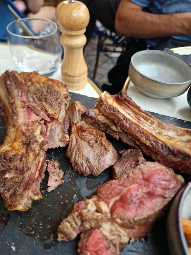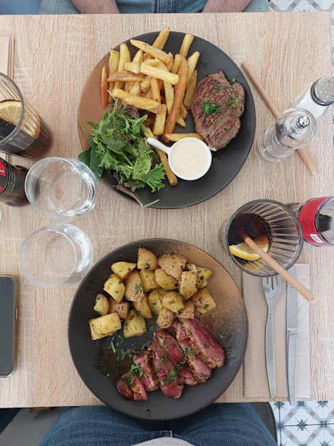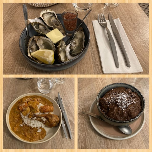 10/10I sat outside and enjoyed the people watching while eating my delicious lunch. They'd run out of oysters, but they gave me the three they had left and they were *so* good! I ordered the pièce de boucher and was rather taken aback by the size of the serving - it's more meat than I usually eat in a week! But it was cooked to perfection and the sauce was phenomenal. I was too full for dessert, but they looked awesome. A very good place for a break from looking at all the booths of the Marché Aux Puces de Saint-Ouen !