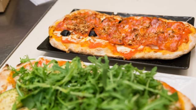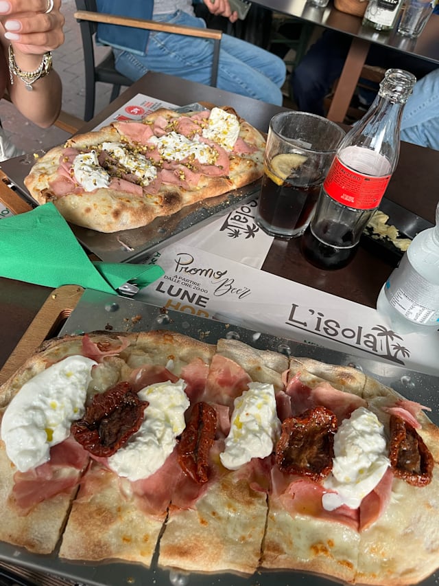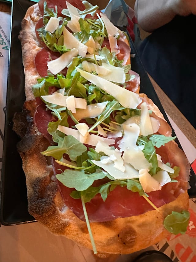 7.5/10decent pizza. Very loud inside around 10pm. Nice Staff, but small .