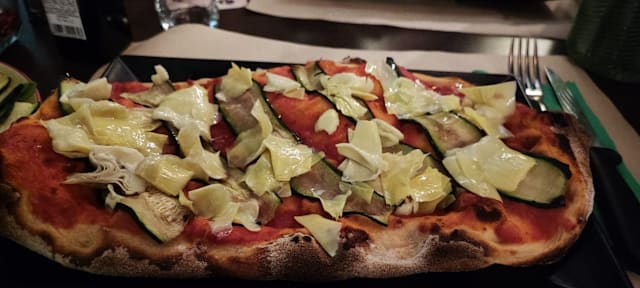decent pizza. Very loud inside around 10pm. Nice Staff, but small .