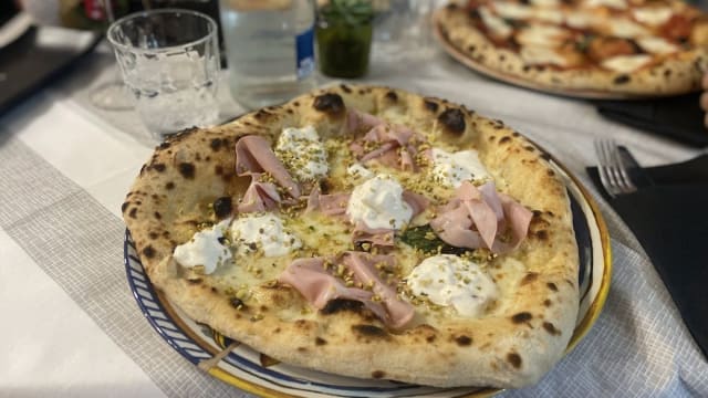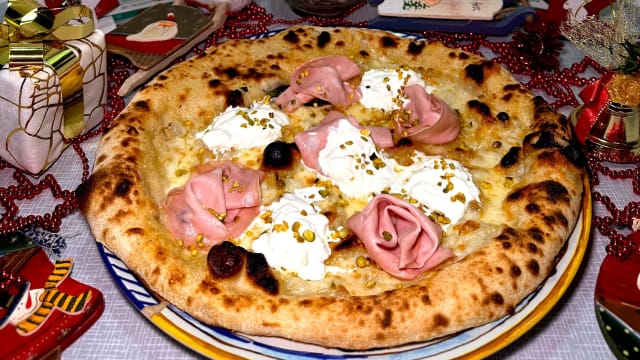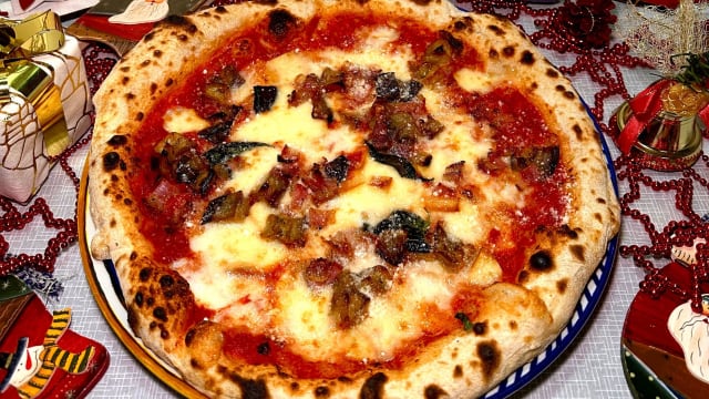 Pomodoro, fior di latte, funghi, olive, prosciutto cotto, carciofi, grana padano, basilico
