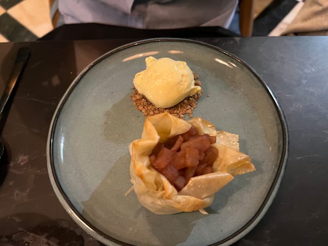 9.5/10Service was very attentive but not overly intrusive . We had the sheep’s cheese with jam as a covert and was amazing . For main I had the tenderloin steak with grilled vegetable . Beautiful flavours and the steak was so tender and cooked to perfection . For dessert I had the chocolate mousse 🥰🥰🥰 We would definitely visit again !!!