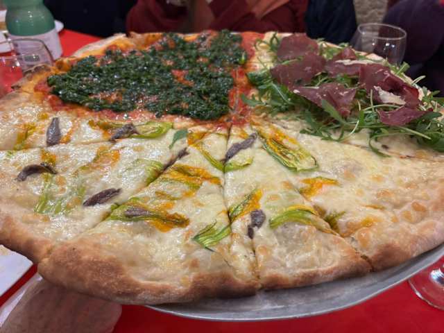 - (pomodoro, mozzarella, bresaola, rucola, scaglie di parmigiano)