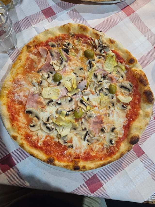 5.5/10The ambience and service left much to be desired. This is a no frills, basic neighborhood restaurant. We ordered a mixed salad which was pretty basic, iceberg lettuce and tomatoes. The olive oil, vinegars, salt and pepper were in packets. We also ordered pizza, which was very good. The crust was chewy, crisp and well prepared with good char. It’s a fine restaurant if you want a very casual, inexpensive meal outside the historic center.