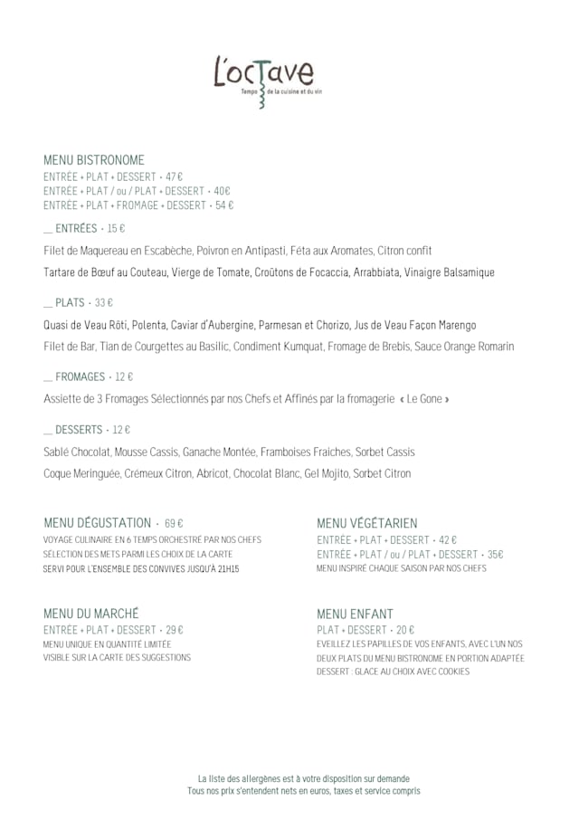 10/10Just super amazing, top notch service, tasty dishes and the place is perfectly decorated. I highly recommend l’Octave, this is a perfect place to eat in Lyon. Thank you really much, wish I can visit more often ;)