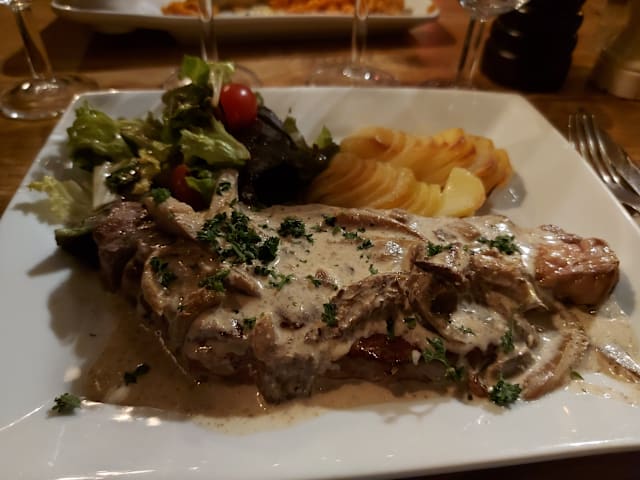 7/10After my visit three years ago, the approach appears to have become routine. Of course it was mid-day Sunday but not busy like some places. The Spanish pork, recommended by the host, had plenty of flavour but appeared to have been heated up by frying. Lots of pan-roasted potatoes, common in France. Big letdown was the salad, with greens beginning to wilt. Nice overall, but not at the price paid. Sorry, because the service was very friiendly.