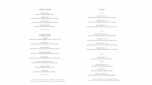 7/10Starters were good and one of the main dishes, the blue lobster was excellent. Turbot fish was mediocre and bland. The dessert squash was strange and tassted more like peanut butter than squash. Our biggest complaint was that a dog in a basket was placed besides our table and one of the guest was frequently opening up the basket to see how the dog was doing. We should have been informed that this would be happening as one of us is allergic to dogs. We left early without having coffee due to that fact.