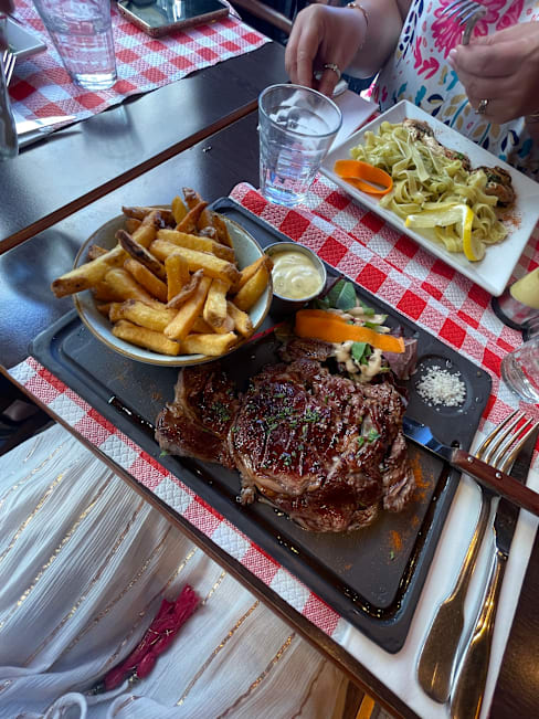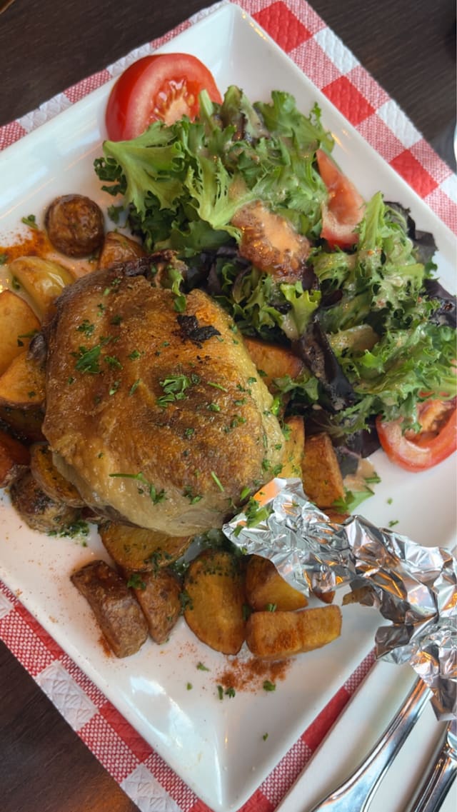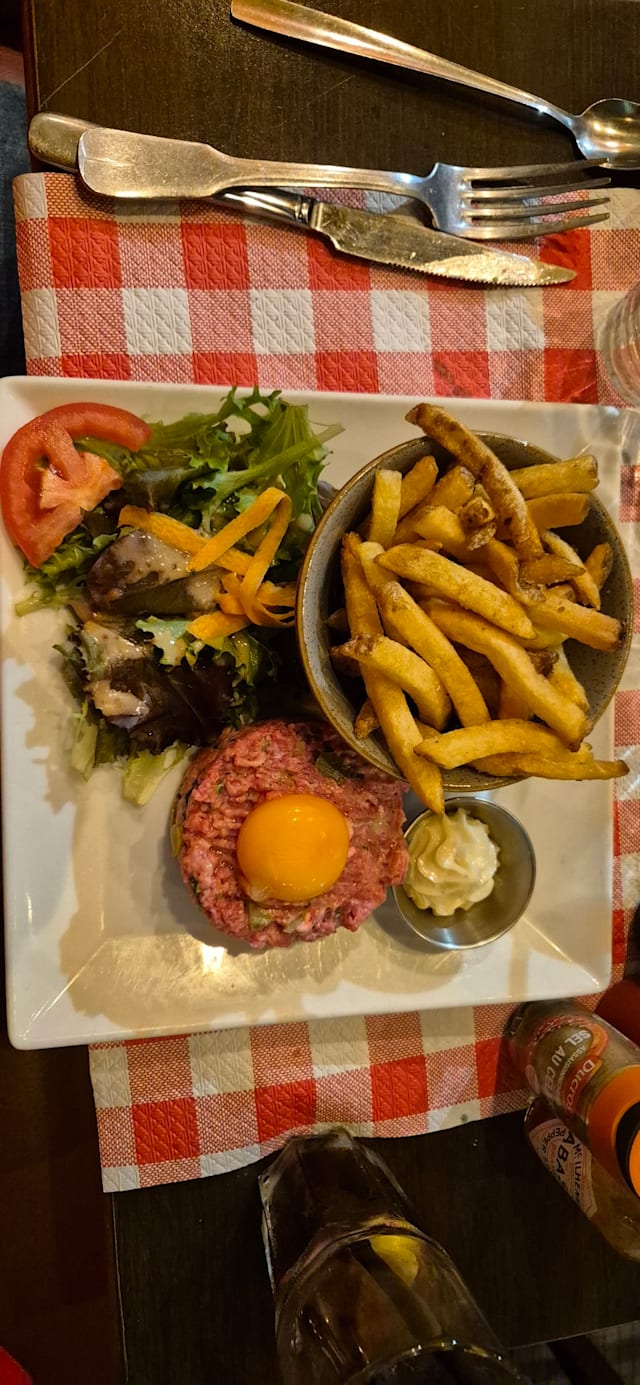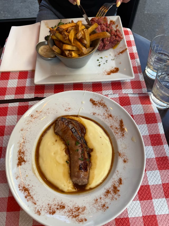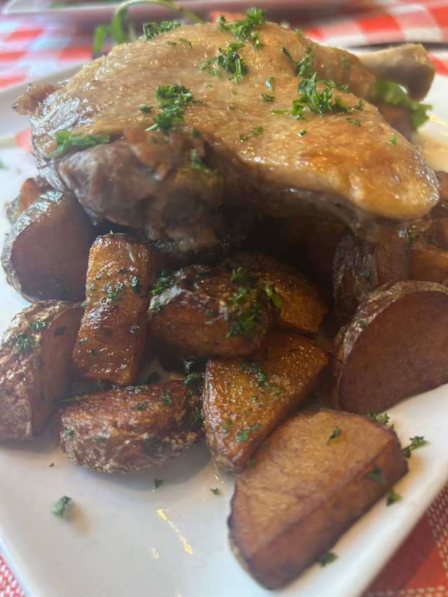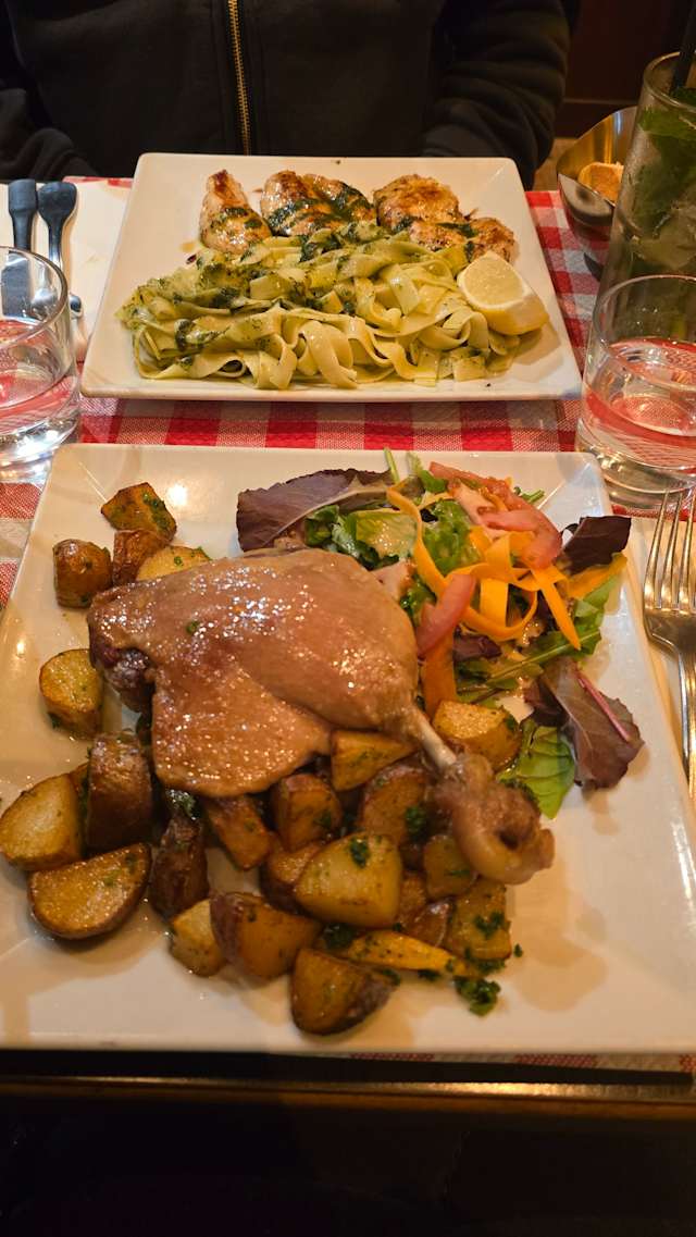 7.5/10It was fine. Ordered a steak medium rare and it was completely uncooked and rare in the middle. So only ate half. Fries were good. Roasted potatoes were crispy on the outside but undercooked on the inside. Duck was fantastic. Restaurant seemed like a hangout place for older men, as us two girls looked out of place there. They honored the Fork discount so that was good. Overall the experience was fine but we probably won’t be returning.