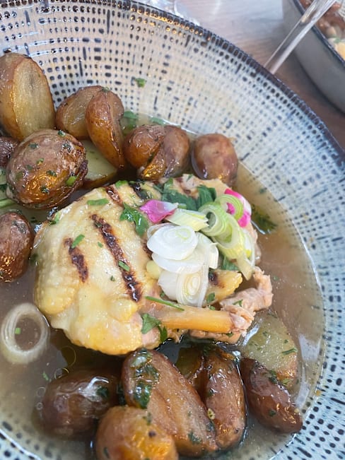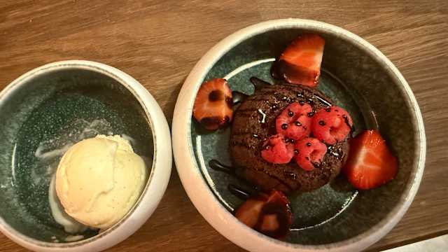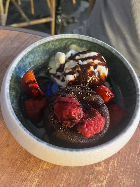 10/10Lovely meal served by very friendly staff. Lots of locals in which is always a good sign. It was a very warm evening so we opted to sit outside which wasn’t ideal as it’s roadside but inside looked lovely. We shared the hummus which was fabulous followed by a lovely chicken dish. Dessert was a chocolate fondant and pain perdition both excellent. Definitely recommend.