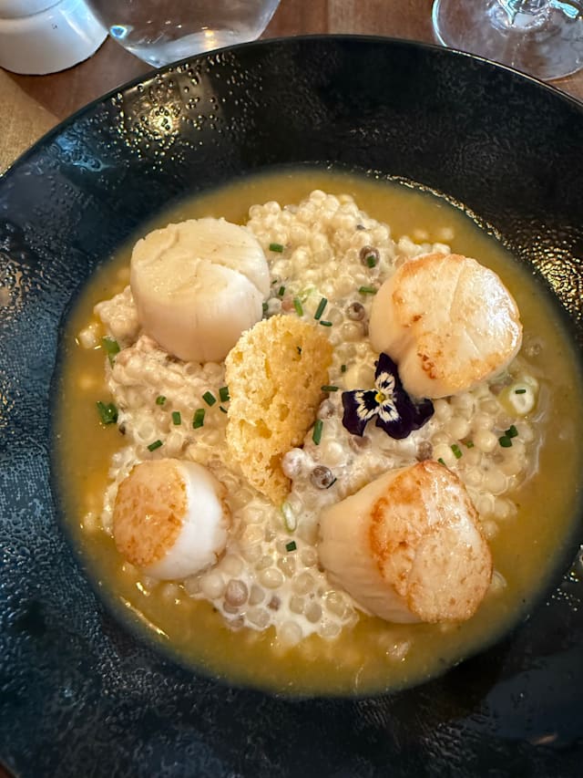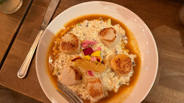 7.5/10A warm welcome and attentive table service at this comfortable and pleasant restaurant. However all of that was not followed up in the taste of my dishes - leek vinaigrette followed by risotto with seafood. Both dishes lacked any seasoning or real flavour. Bland and disappointing culinary offerings which spoilt the experience.