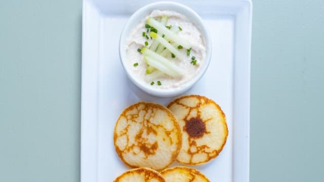 - Saumon fumé au piment d'espelette, pain toasté et crème aigrelette