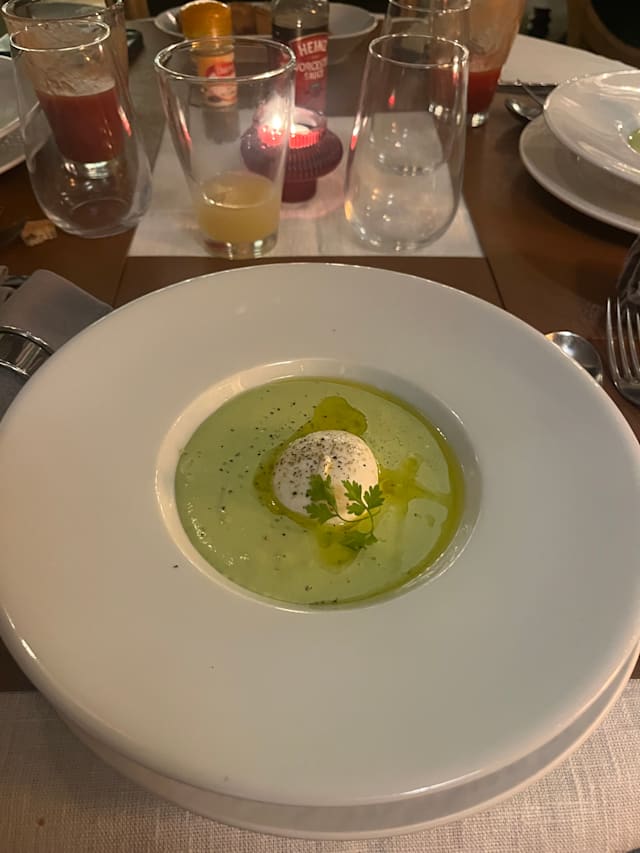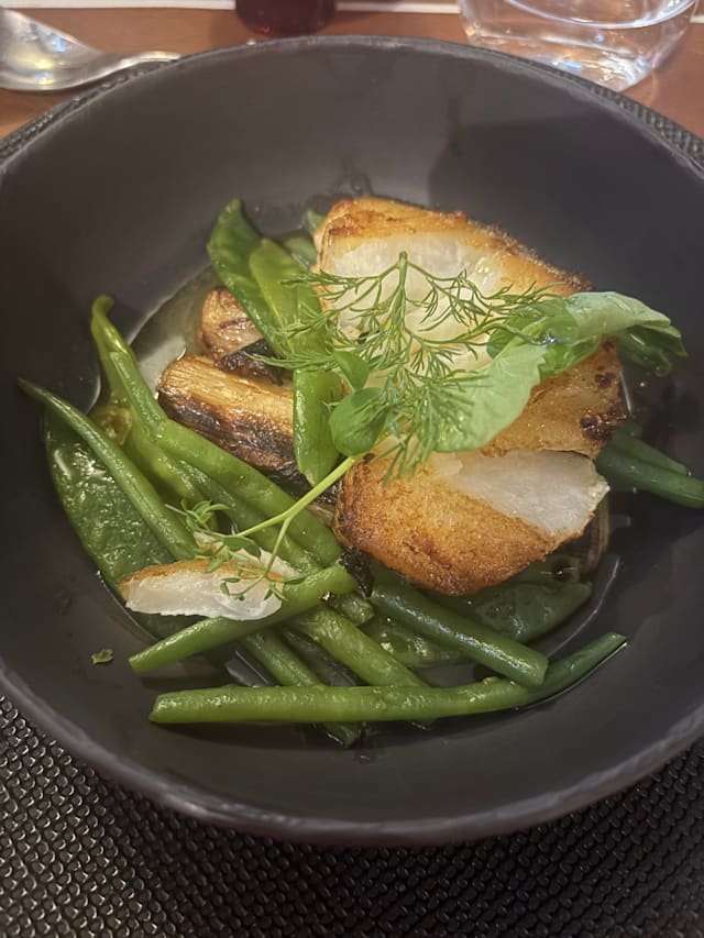 4/10We were very disappoited about the restaurant, especially after the rate of 9 on the fork we expected much more. Nice things first: The ambience of the restaurant is very nice. Nice and chic decor and the staff is in overall very friendly. When we came in we felt very well and welcomed. BUT we did not even sit at the table when we were served directly the "amuse bouche", . We had not settled in, ordered drinks or even chosed our menu and we found ourselves with a plat of ho tsoup in front of us which I eat even before checking the menu as I didnt want it to get cold. This is a no go! Maybe I wanted to go on the toilettet first, wash my hands or order an aperitif? The food was average, for the price even below average. The nicest thing was actually the amuse bouche. My husband had a half (!) chicken with bones, which was not really nice to eat in a restaurant with cutleries. I had a japonaise fish which was ok but a bit dry considering that the kitchen had served me fresh mayonaise with it, eventhough I said three times that I was not allowed to eat it, since I am pregnat. For each cours , it felt, they actually did not care about it. I would have expected for a restuarant at this class, to be aware of the ingridents of the dishes and offer me alternatives. If you are an allergic I recommend you not to go there as the staff is really not trained on this point. I found the service in overall lacking of professionalism for this type of restaurant and the price they take for the dishes and drinks.. 10€ a bottle of water that was actually sold as 6€ on the menu. One very dissapointing point was also that the whole staff did not respect the sanitary regulations (not the waiter, neither the owner or the chefs). Each staff member was not wearing the mask properly or at all, the chef even licked his fingers during plating the dishes (ahgrrrr). For an open kitchen also something that should be considered. For two starters, main courses and desserts +2 bottles of water we paid 155€. We will defenetly not comeback, but hope that this review is helping to make it better as this place really has potential.
