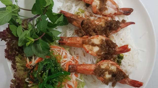 Scampis sautés aux haricots noirs (ou poivre noir) sur plaque chauffante