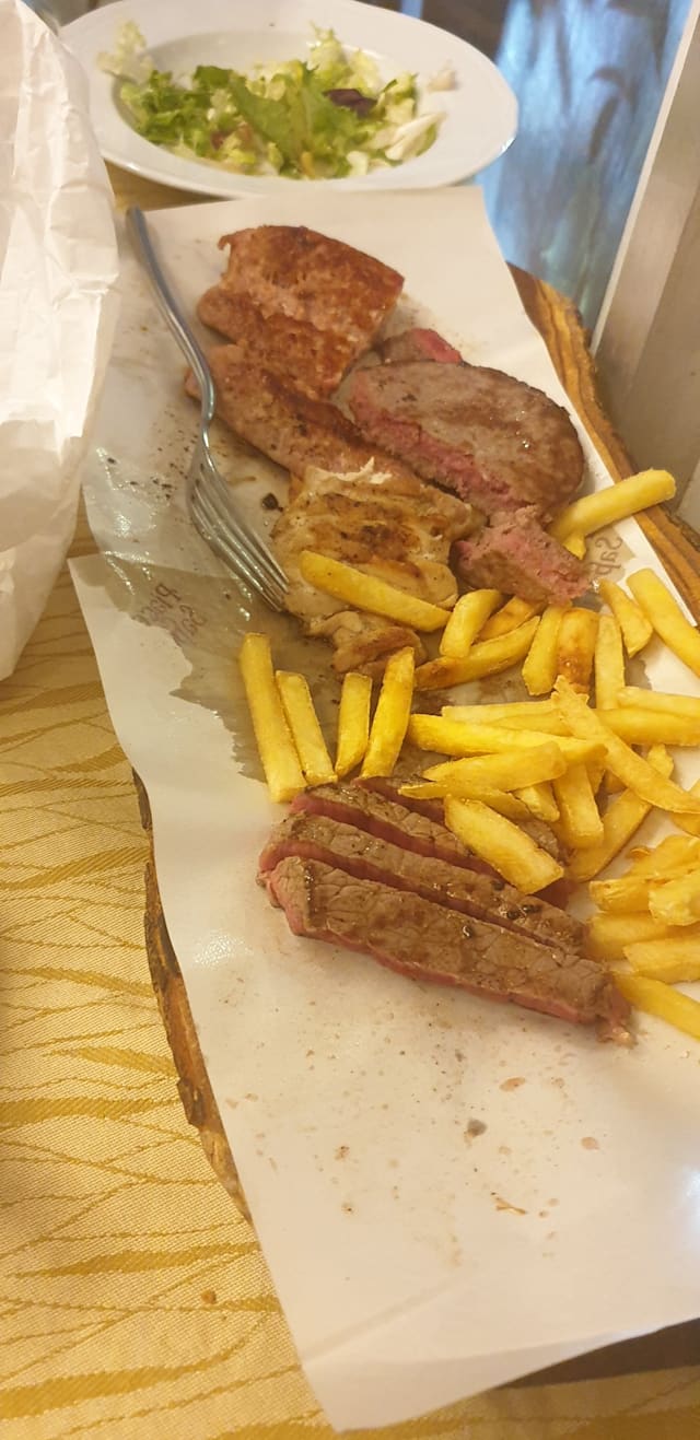 Grigliata mista di carne con, maiale, salsiccia, ed hamburgher di bufalo