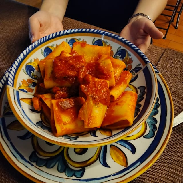 Paccheri con ragù di pesce ed una spolverata di finocchietto selvatico