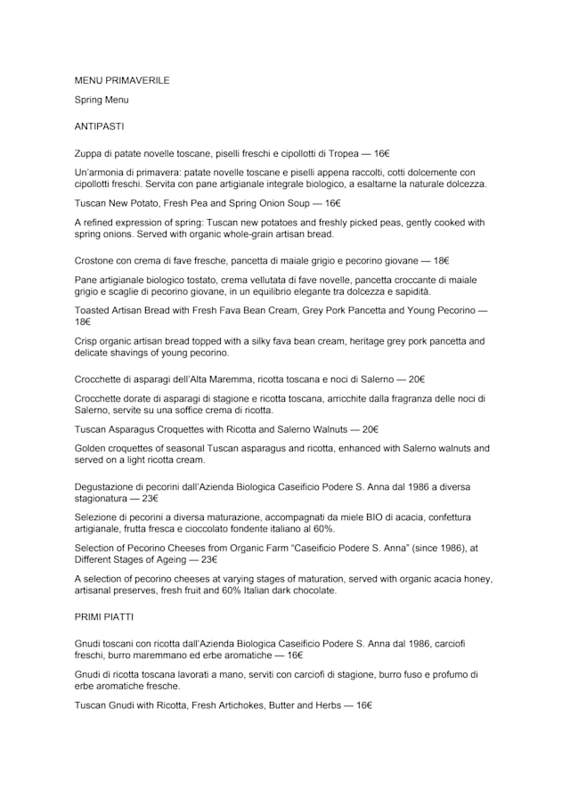 A cozy classy and intimate restaurant run by Matteo with his mother in charge in the kitchen. Outstanding local wine list. Traditional Tuscan food made with high quality ingredients & a little flair. A gem of a restaurant.