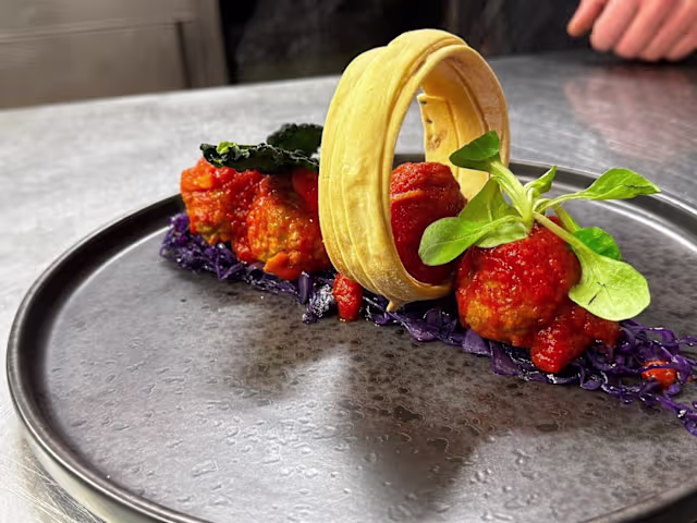 - Slow-cooked Silane IGP potatoes filled with Chianina IGP 5R veal and burrata DOP, served on a smooth and velvety celeriac purée