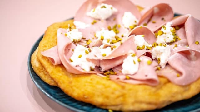 Provola affumicata, in uscita mortadella, crocchè di patate e granella di pistacchio