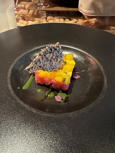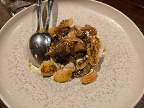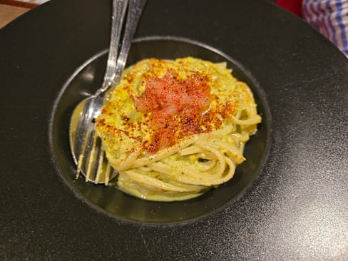 6.5/10The sea urchin Tagliolino and mushroom gnocchi were great. Unfortunately the octopus was overcooked to chewiness and the peas and cheese did not complement the octopus well. The Carasau bread millefeuille with smoked eggplant cream was a very unappealing texture and taste.