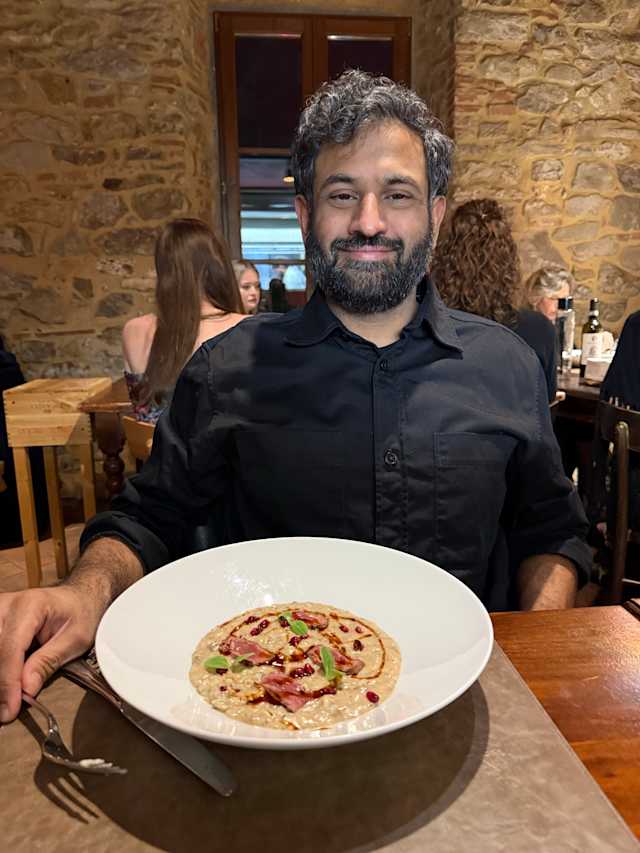 - Risotto al piccione con petto scottato, melograno e il suo fondo
