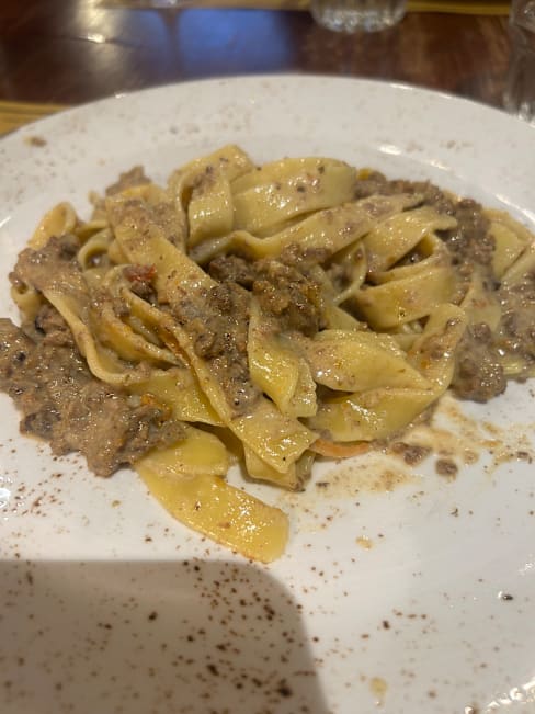 10/10Staff was great! Friendly and attentive. The food was spectacular! We both had the tagliatone one with the wild board sauce and one with the meat sauce. Both were delicious.we had a bottle of the Amorone della Valpilocella (always a lovely wine) and then split a tiramisu. The tiramisu was positively delightful! Great food and great evening!