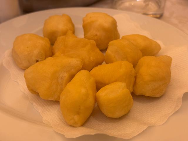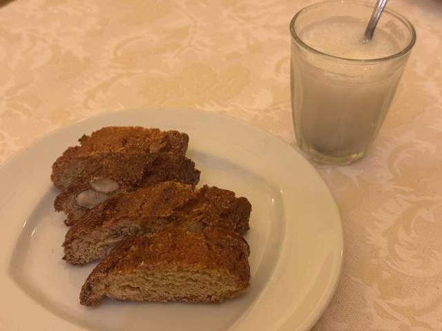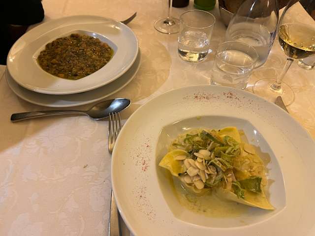 - L'antipasto di Giovanni: prosciutto toscano e salumi artigianali, crostini con fegatini e bruschette con pesto di funghi champignon, ricotta del pastore