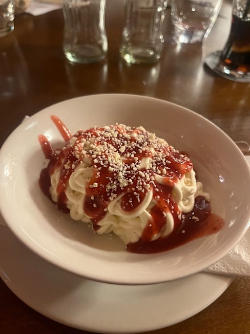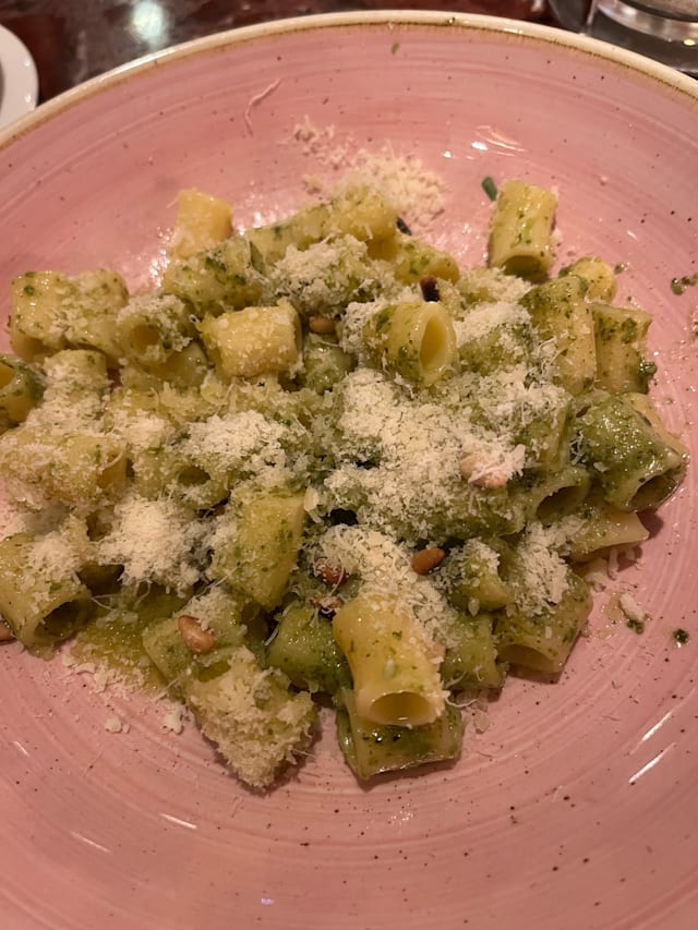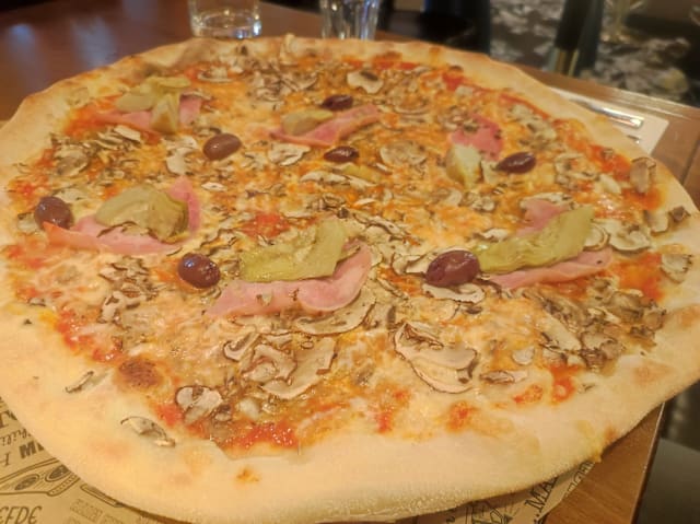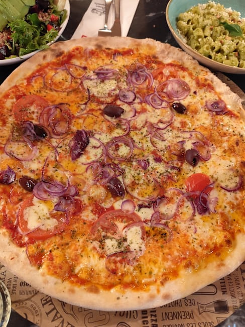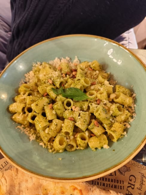 9.5/10Kind waiter, giant pizza, good pasta. House red wine not so great, but drinkable.