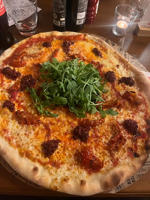 10/10Excellent food ! Very nice vibe . Cool downstairs . Super large pizzas