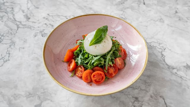 - Mozzarella, tomates cerises, mozzarella di bufala, basilic