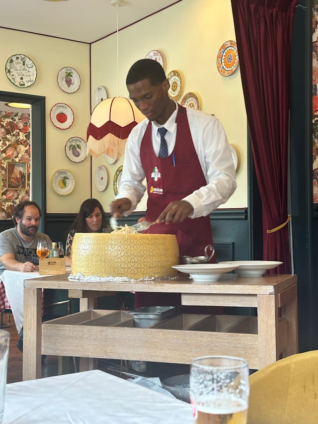 9.5/10Welcoming reception, good table and friendly waiters. The menu offers a large variety of dishes. We were surprised with the quality and presentation of the dishes. Very attentive waiters and suitable italian music in the background.