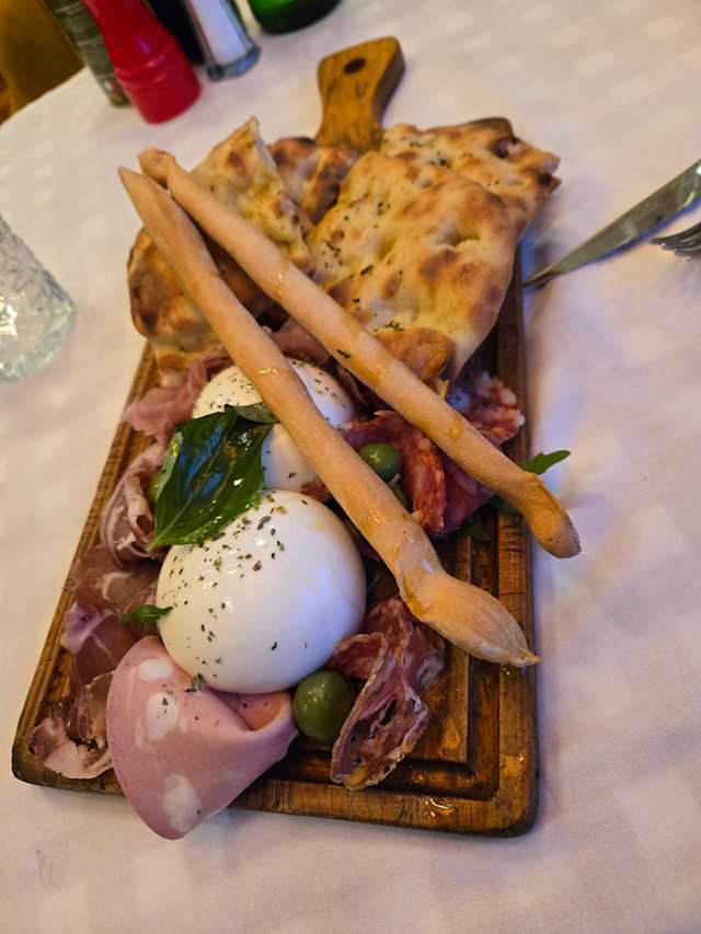 - Burrata 200gr servida com enchidos italianos vários e pinsa quente com azeite e alho
