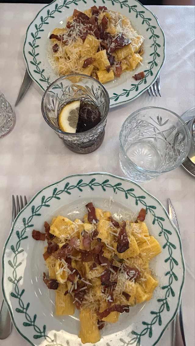 - Macarrão com guancilae, ovo, queijo pecorico e pimenta preta
