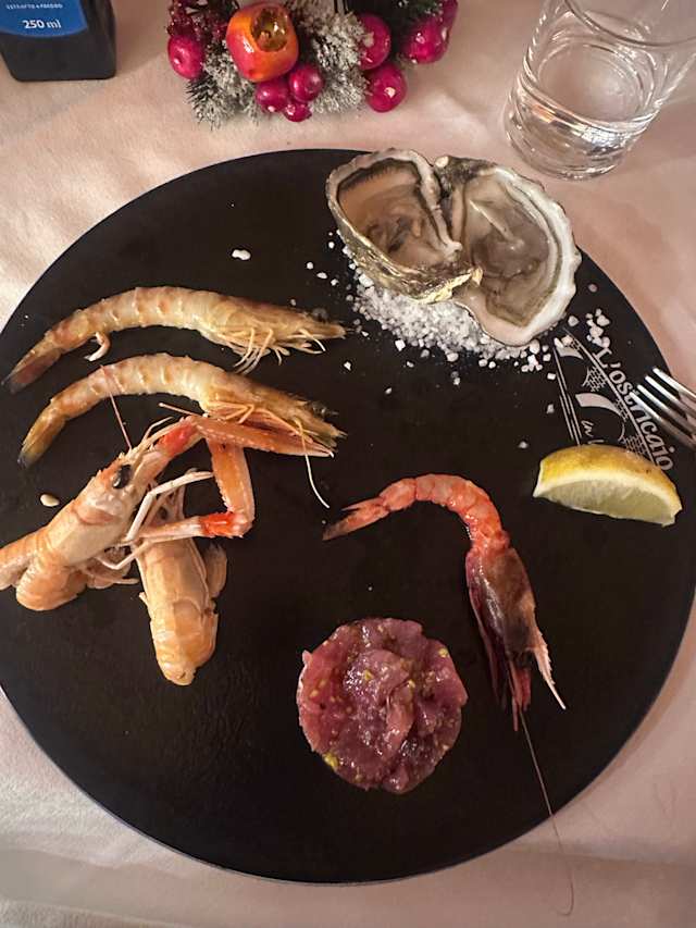- Gamberoni*, scampi*, tonno, seppia e pescato del giorno
