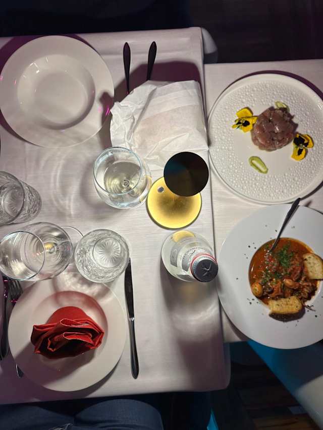 8/10The food is good, even if this applies primarily to the raw seafood. The cooked (fish) dishes did not score as well across the board. The service makes an effort. The ambience is very divers. On the one hand, the very nice outdoor seating with a wonderful view of the marina, located on a quiet street. The interiors are not to my taste: a somewhat strange mix of (wannabe) pop art and casual elegance that is now very dated. Some would simply call it “kitsch”. A recommendation for selected dishes in the outdoor area. Otherwise - not my style.