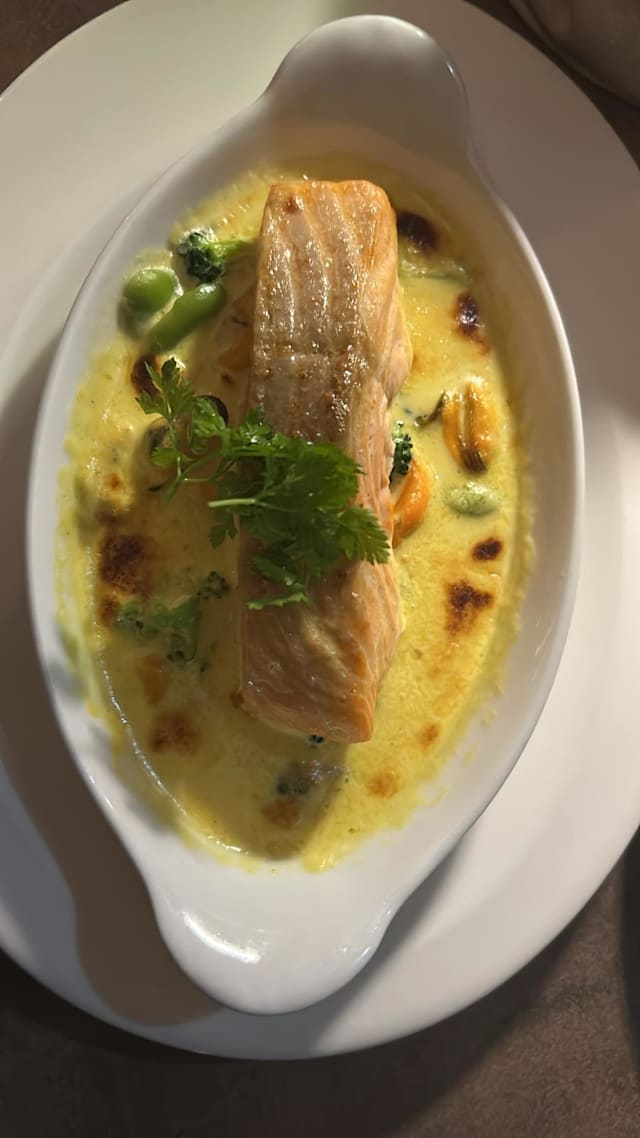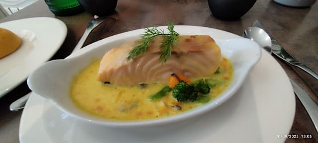 8/10The ambiance was pleasant, with soft jazz playing in the background, which set a relaxed mood. The service started off well—quick and attentive—but was followed by a long, unnecessary pause before dessert, which felt a bit awkward, especially since we were the only guests. While everything was almost fine, something felt missing. Considering the location, the total price seemed rather steep; for the same amount, we could have had a more satisfying experience at Passe Franc in Yvoire.