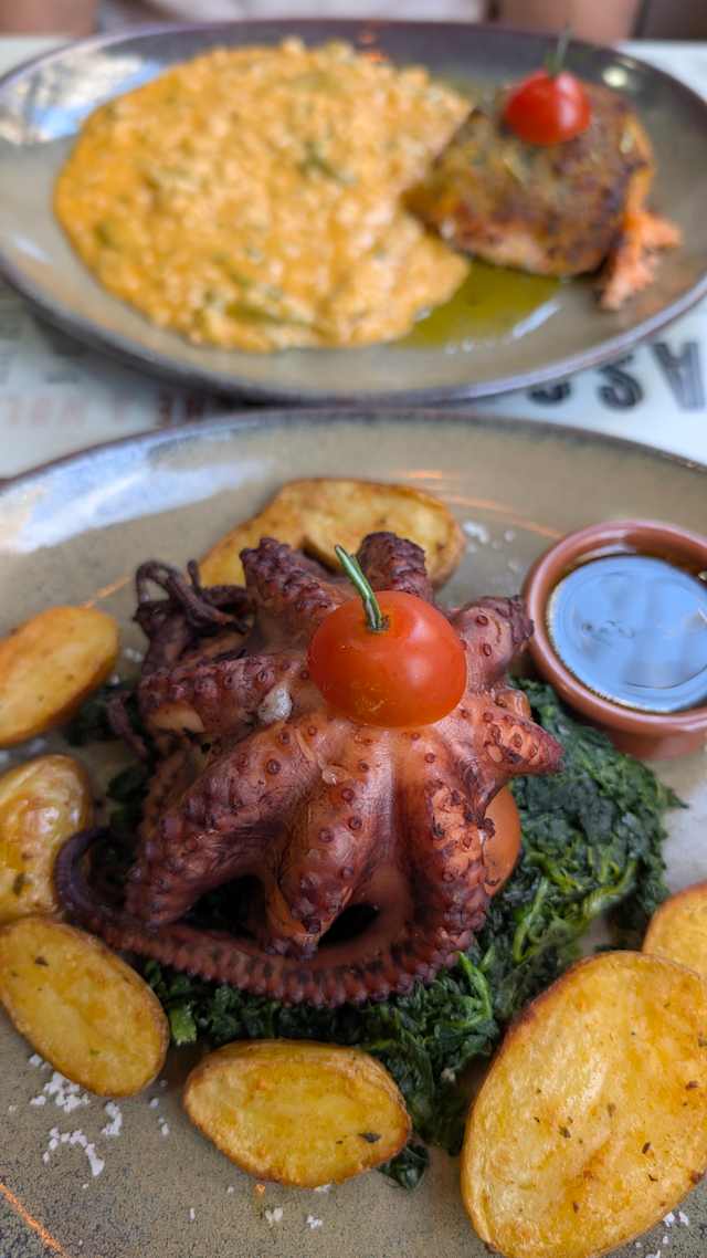10/10Wonderful seafood—we had sea bass with clams and octopus and shrimp risotto. Cute place tucked in somewhat below a hilly street with good prices too. We may return for lunch if we have time (note Apple Maps showed the restaurant only open in evening but we were informed they are also open from 1200 - 1500).