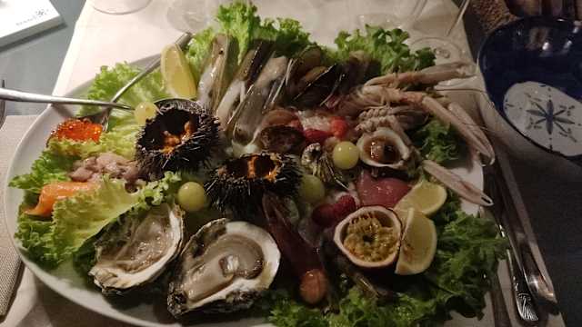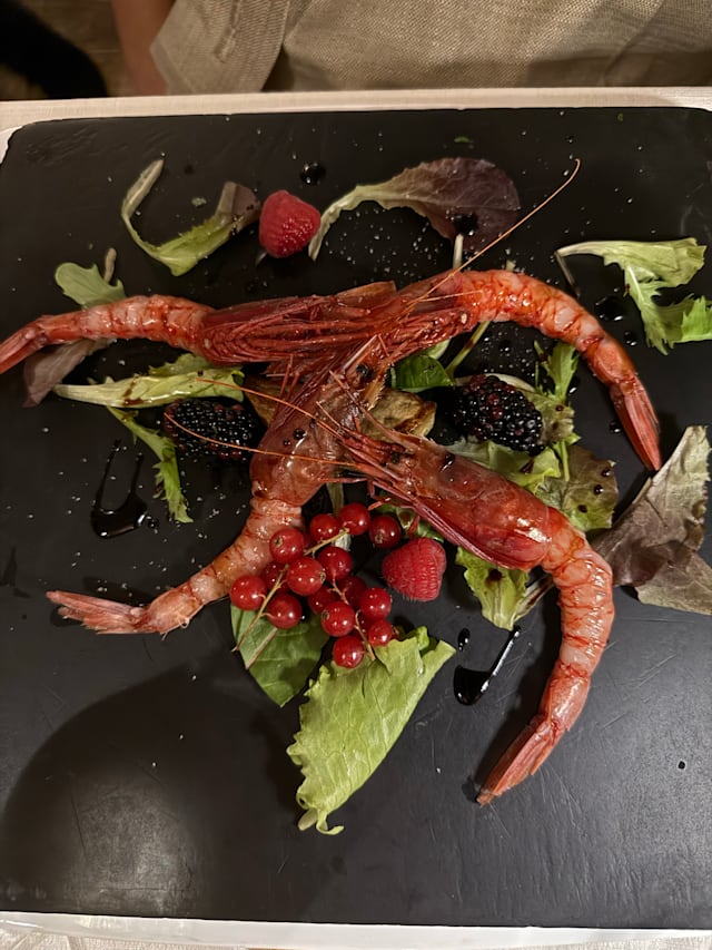 - Scaloppa di foie gras con cruditè di gambero rosso