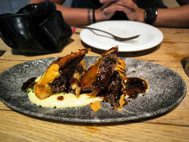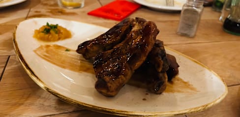 8.5/10My boyfriend had ribs, he said they were super tasty, the best he eaten so far. I had mussel croquettes and tempura cod, but it just was not the best choice for me. Waiter was very nice.