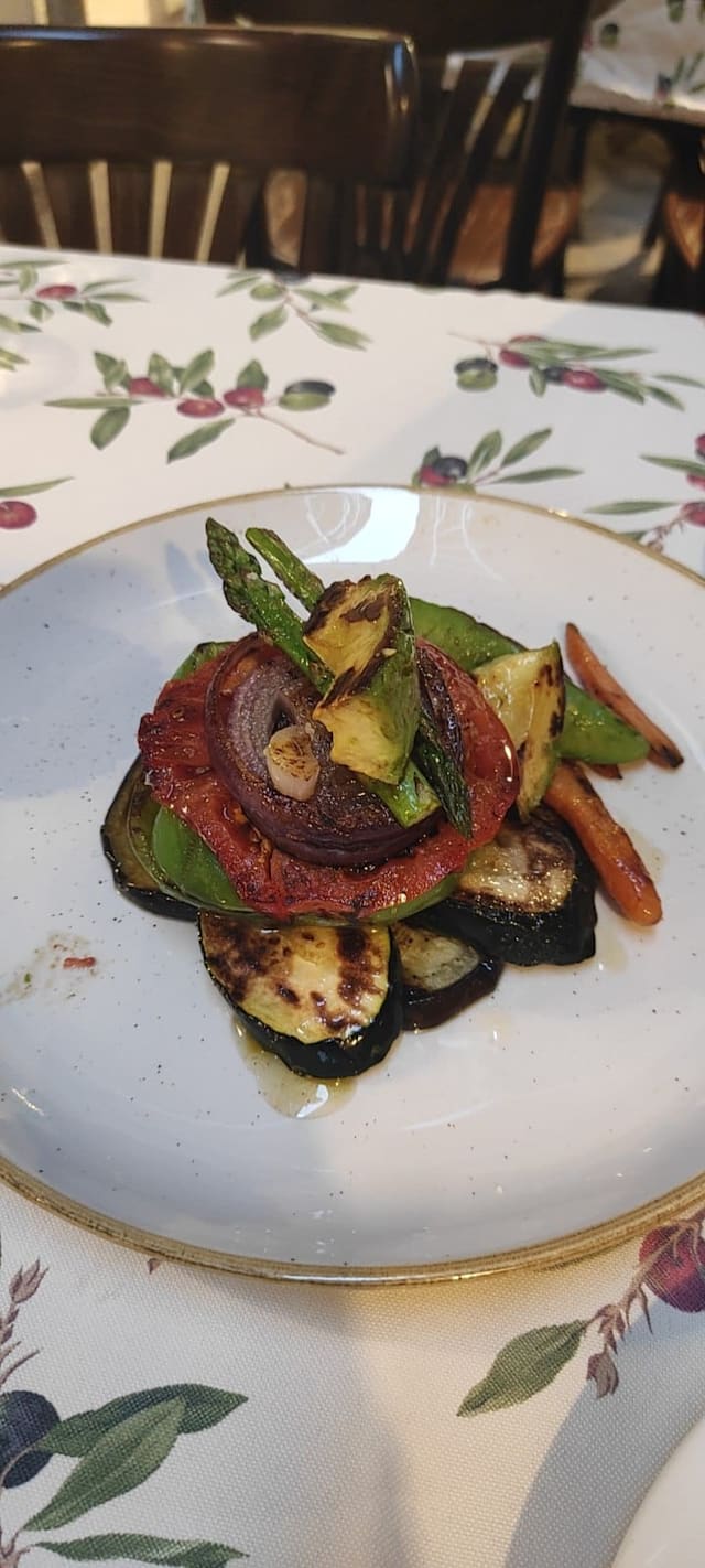 10/10We just went simple. A dish of 5 different types of tomatoes and a dish of Iberian meats and cheese. Nothing cooked. Accompanied with a bottle of local wine . Lovely staff and ambience.