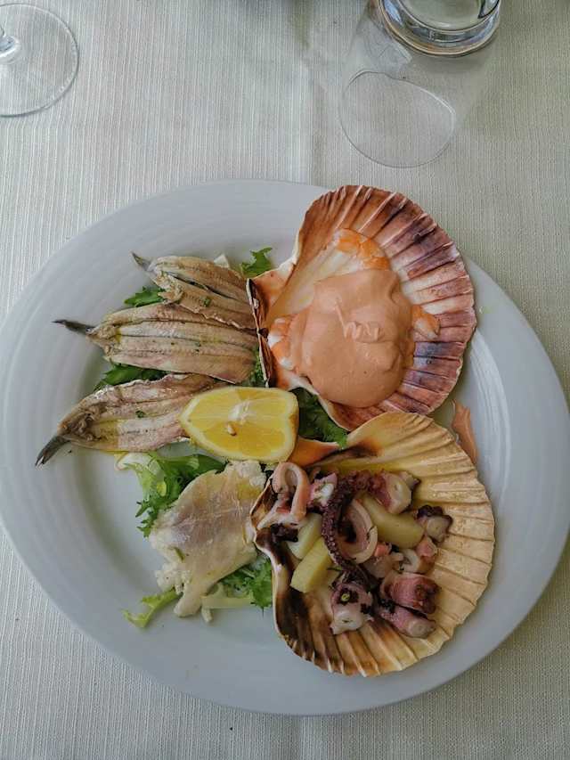 - R1cola, gamberetti in salamoia, scaglie di parmigiano e s1cco di limone