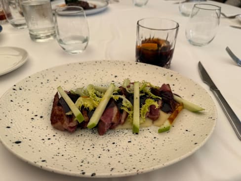 7.5/10A couple hiccups in service- I asked the host if there was a place for my coat and was offered an ottoman to place it beside me only to notice a few minutes later there was a coat rack in the dining room she neglected to mention. The croquettes and lamb matin course were stupendous and the staff was very helpful recommending a wonderful wine to match our tastes, but the duck entree felt over tough and uninteresting in terms of flavor, but the desserts made up for it as well and all in all it was a lot of great things and experiences with a couple stumbles.